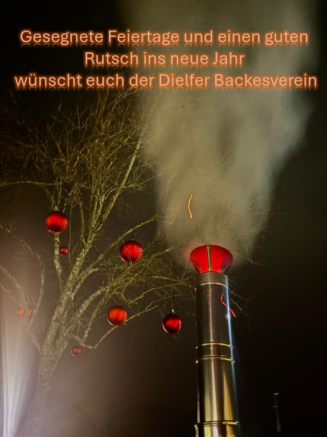 Das bestellte Brot kann am Sonntag ab 15:00Uhr (bis ca. 17:00Uhr), am Dielfer Backes, abgeholt werden.